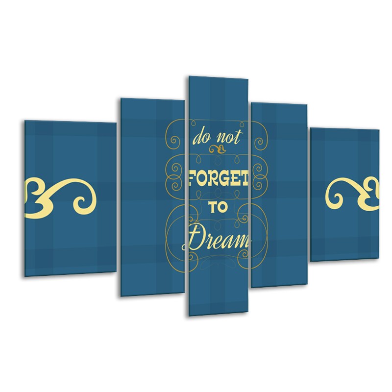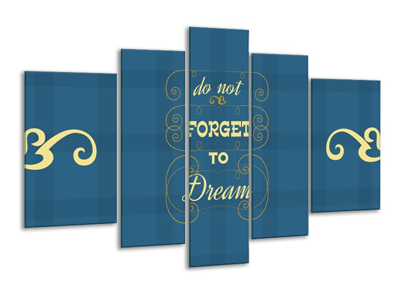 Glasschilderij Tekst, Modern | Blauw, Geel | 170x100cm 5Luik