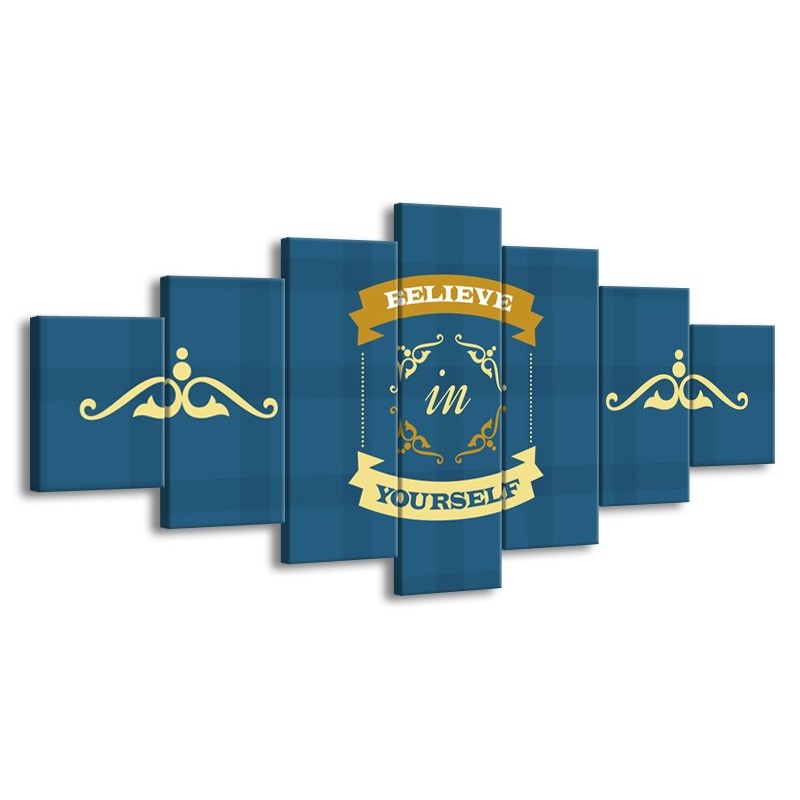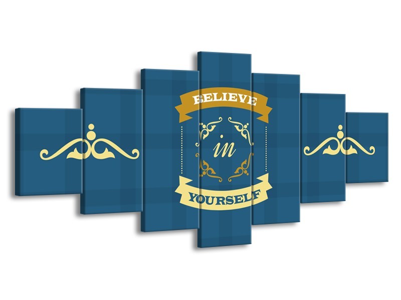 Glasschilderij Tekst, Modern | Blauw, Geel | 210x100cm 7Luik