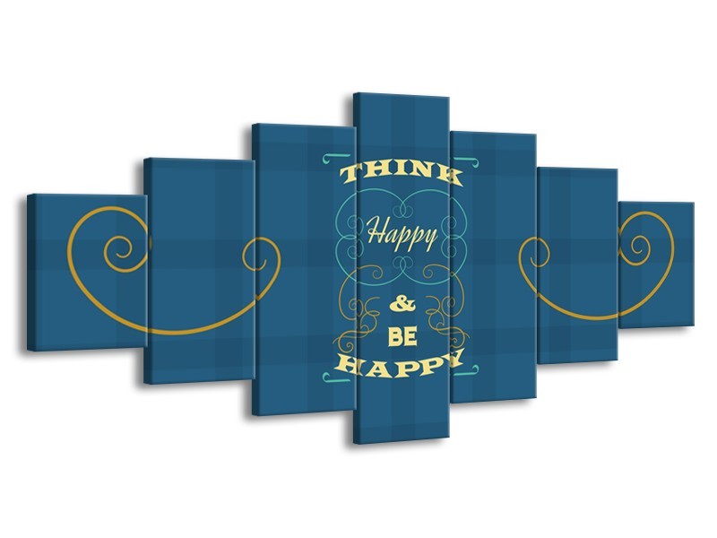 Glasschilderij Tekst, Modern | Blauw, Geel | 210x100cm 7Luik