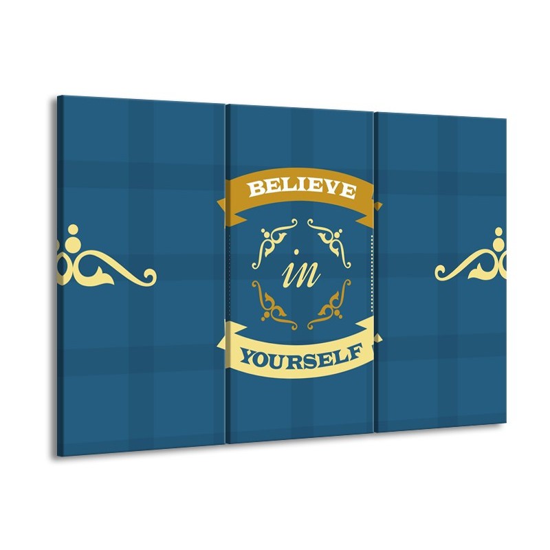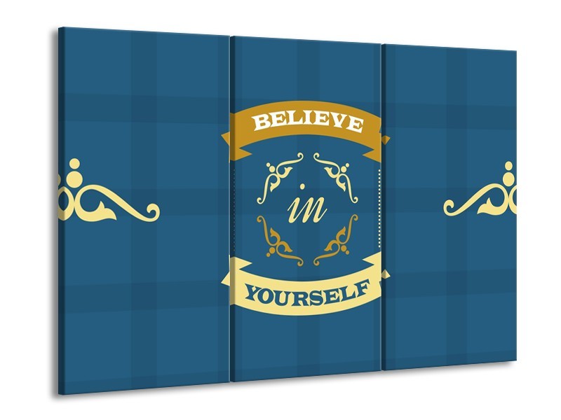 Glasschilderij Tekst, Modern | Blauw, Geel | 60x90cm 3Luik