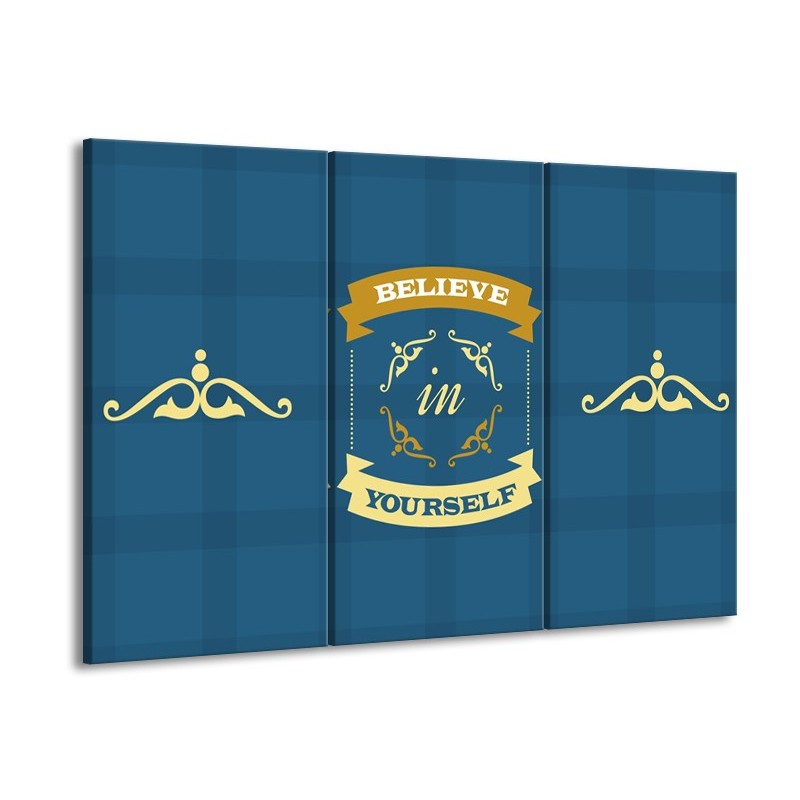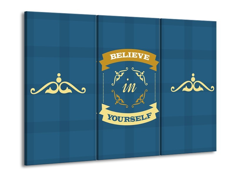 Glasschilderij Tekst, Modern | Blauw, Geel | 60x90cm 3Luik