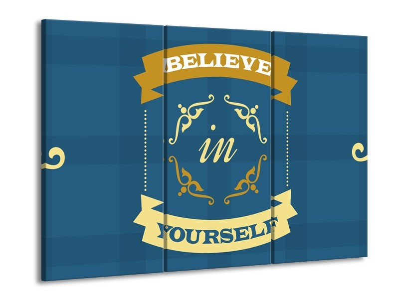 Glasschilderij Tekst, Modern | Blauw, Geel | 60x90cm 3Luik