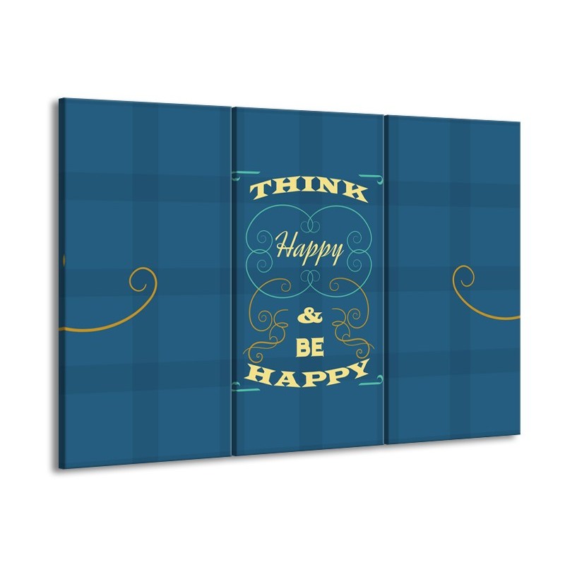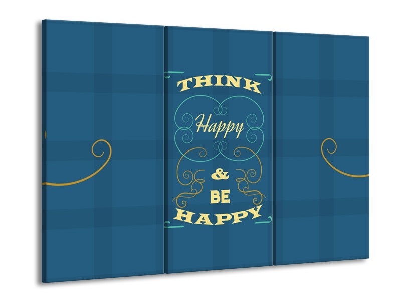 Glasschilderij Tekst, Modern | Blauw, Geel | 60x90cm 3Luik