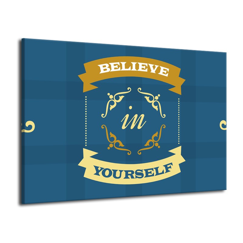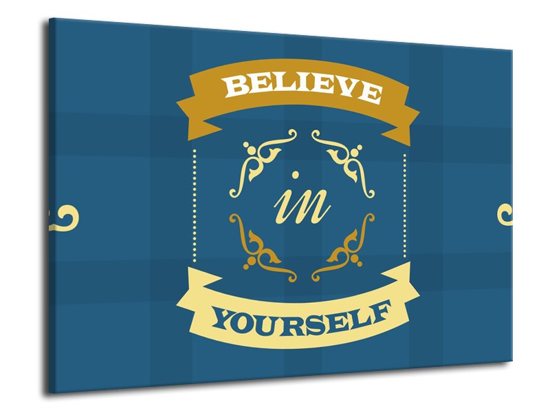 Glasschilderij Tekst, Modern | Blauw, Geel | 70x50cm 1Luik
