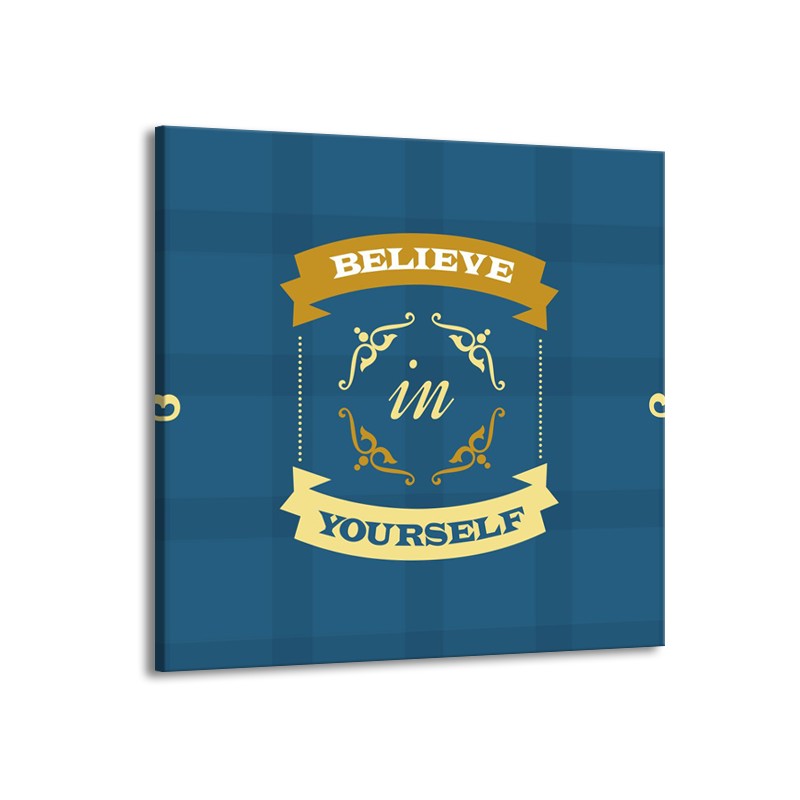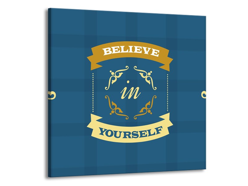 Glasschilderij Tekst, Modern | Blauw, Geel | 70x70cm 1Luik