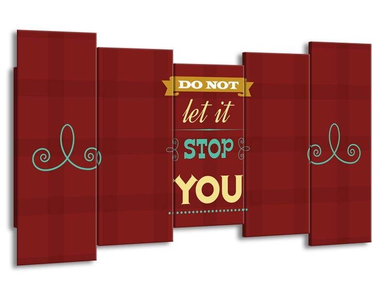 Glasschilderij Tekst, Modern | Bruin, Rood, Geel | 150x80cm 5Luik