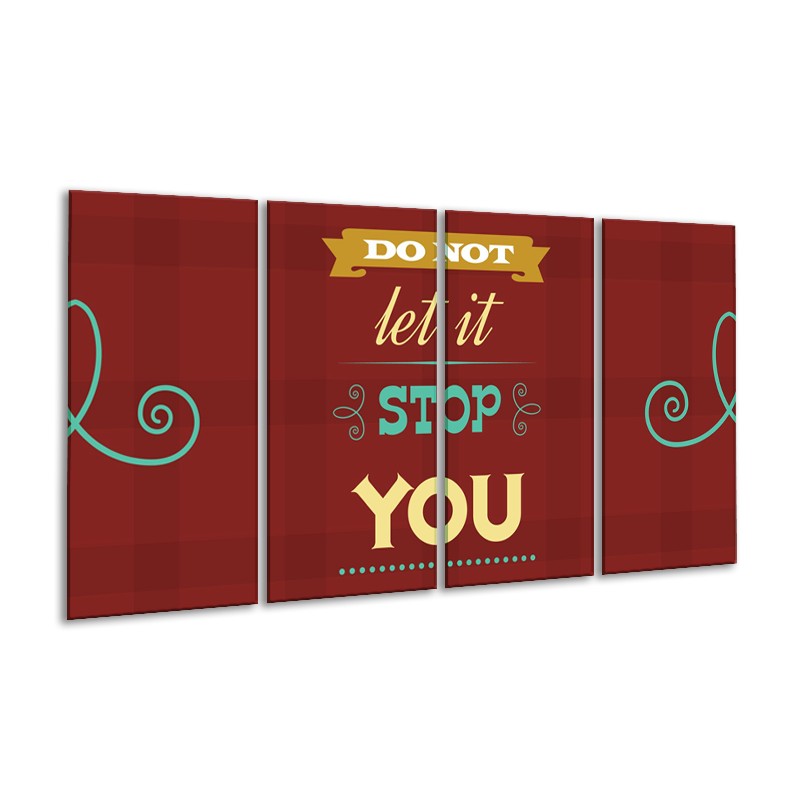 Glasschilderij Tekst, Modern | Bruin, Rood, Geel | 160x80cm 4Luik