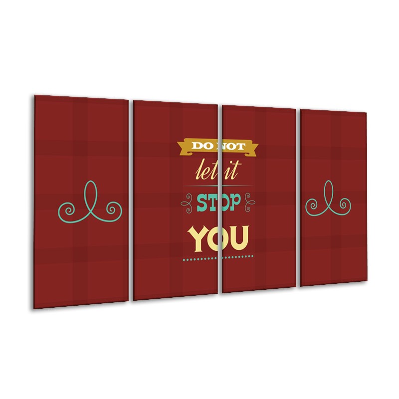 Glasschilderij Tekst, Modern | Bruin, Rood, Geel | 160x80cm 4Luik