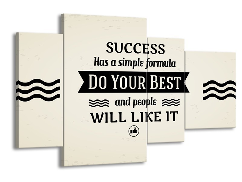 Glasschilderij Tekst, Modern | Crème , Zwart | 120x75cm 4Luik