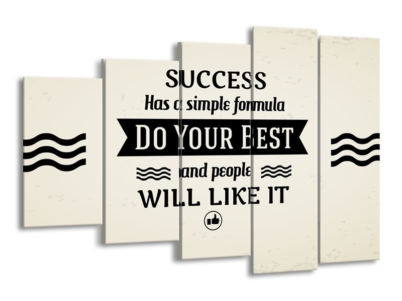 Glasschilderij Tekst, Modern | Crème , Zwart | 150x100cm 5Luik