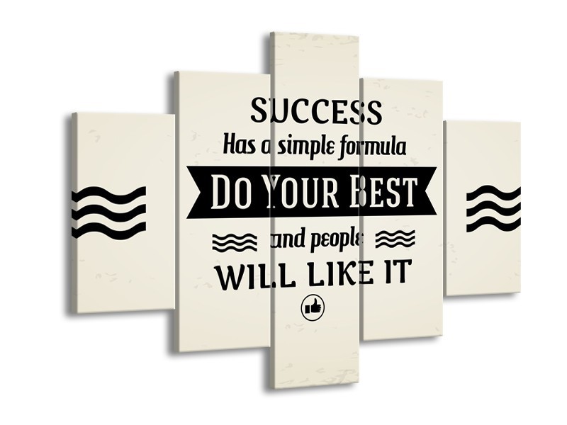 Glasschilderij Tekst, Modern | Crème , Zwart | 150x105cm 5Luik