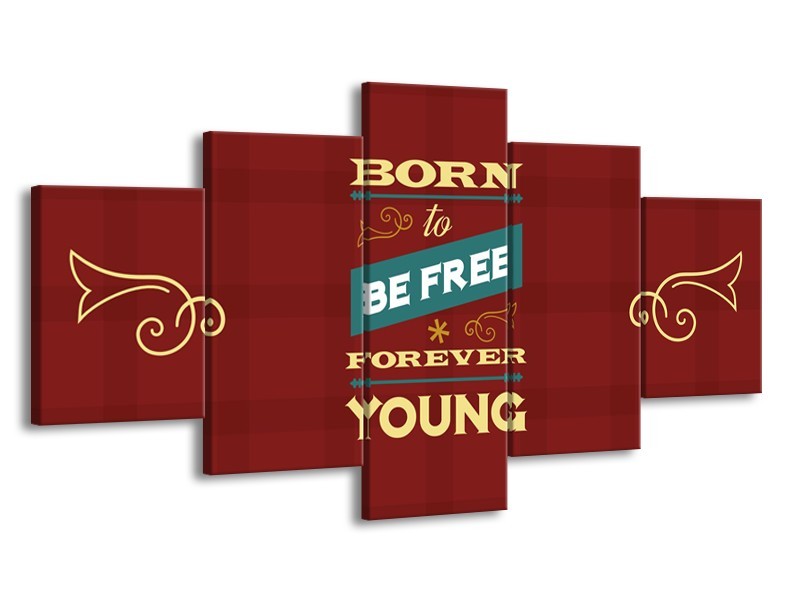 Glasschilderij Tekst, Modern | Geel, Bruin, Rood | 150x80cm 5Luik