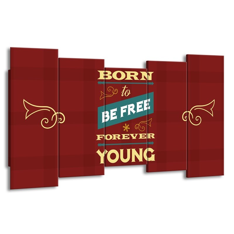 Glasschilderij Tekst, Modern | Geel, Bruin, Rood | 150x80cm 5Luik