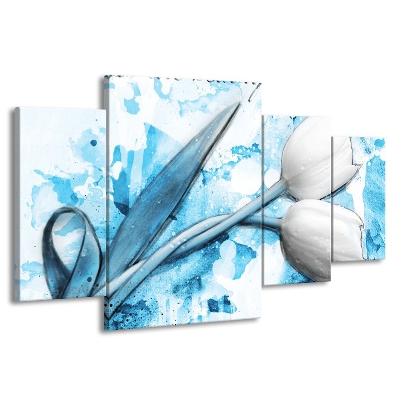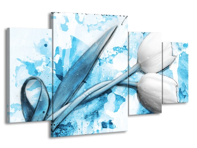 Glasschilderij Tulpen, Bloemen | Blauw, Wit | 160x90cm 4Luik