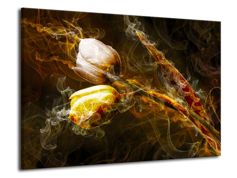 Glasschilderij Tulpen, Bloemen | Bruin, Goud, Geel | 70x50cm 1Luik