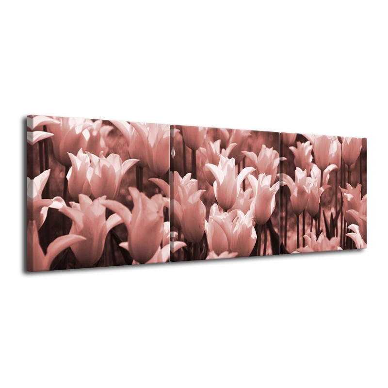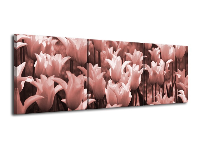 Glasschilderij Tulpen, Bloemen | Bruin, Rood | 120x40cm 3Luik