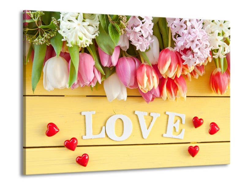 Glasschilderij Tulpen, Bloemen | Geel, Roze, Wit | 100x70cm 1Luik