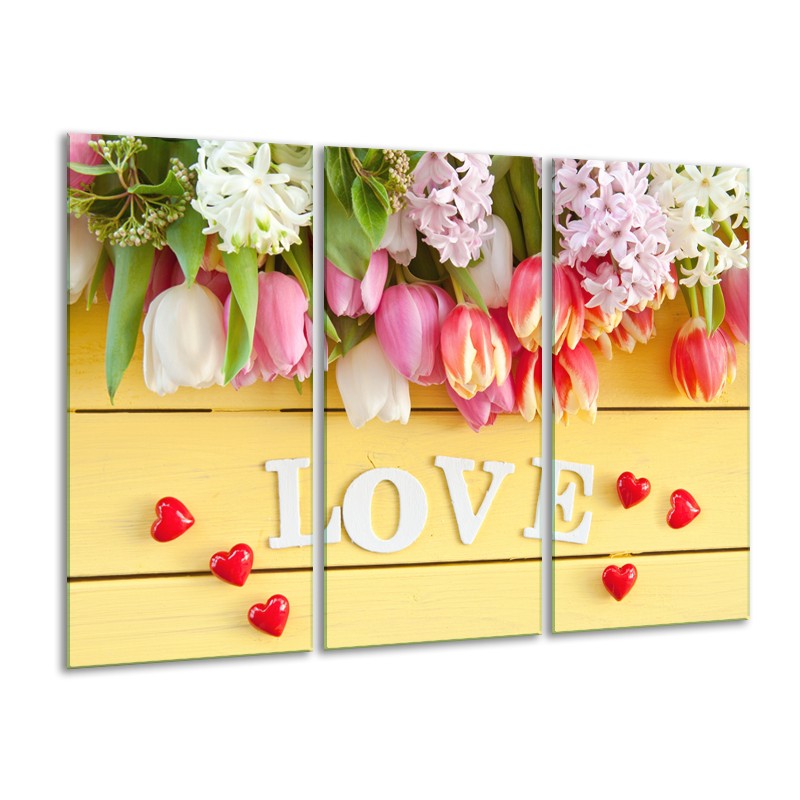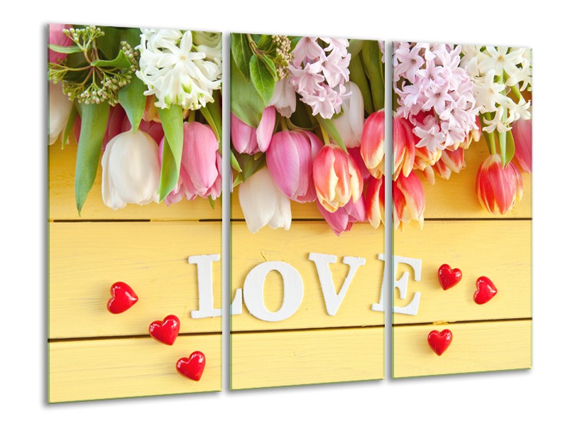 Glasschilderij Tulpen, Bloemen | Geel, Roze, Wit | 120x80cm 3Luik