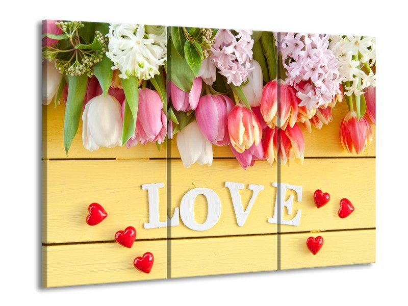 Glasschilderij Tulpen, Bloemen | Geel, Roze, Wit | 60x90cm 3Luik