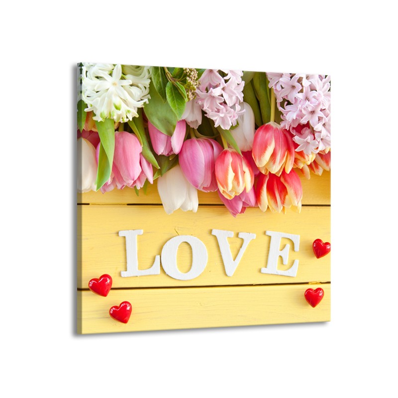 Glasschilderij Tulpen, Bloemen | Geel, Roze, Wit | 70x70cm 1Luik