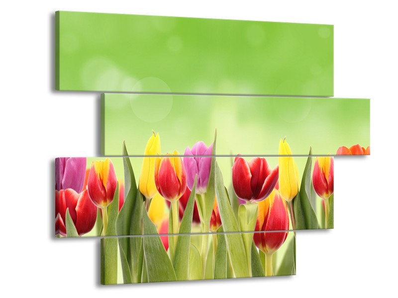 Glasschilderij Tulpen, Bloemen | Groen, Rood, Geel | 115x85cm 4Luik