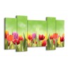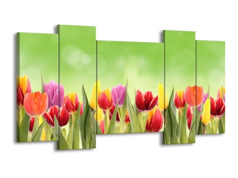 Glasschilderij Tulpen, Bloemen | Groen, Rood, Geel | 120x65cm 5Luik