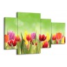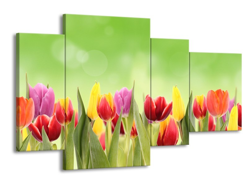 Glasschilderij Tulpen, Bloemen | Groen, Rood, Geel | 120x75cm 4Luik