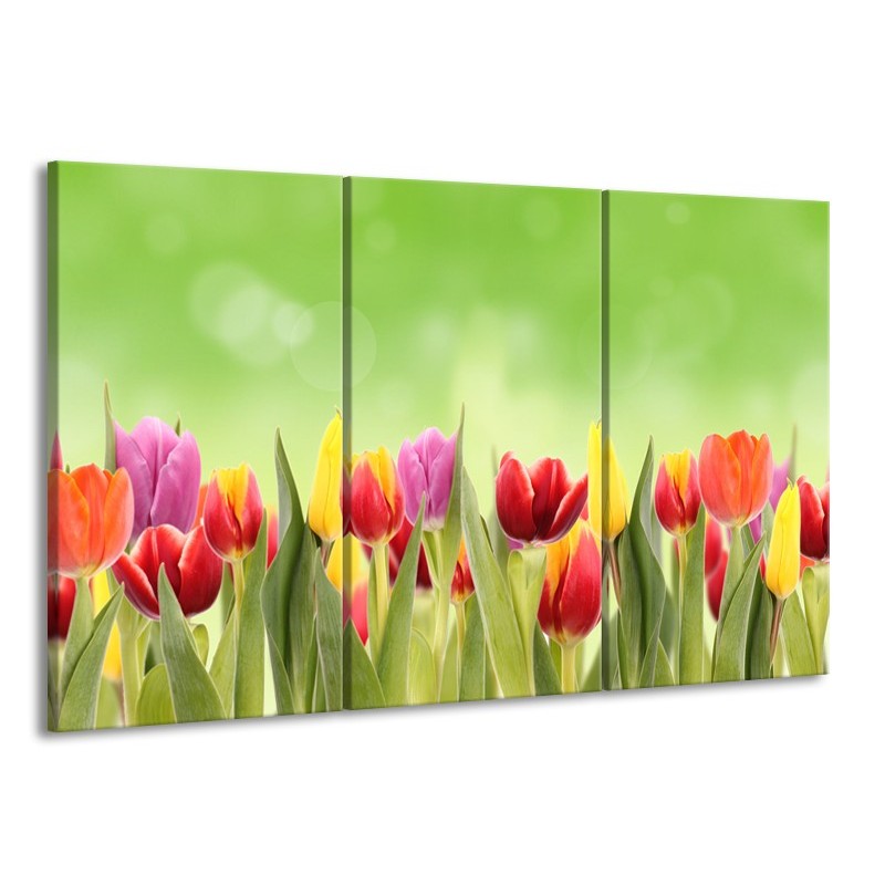 Glasschilderij Tulpen, Bloemen | Groen, Rood, Geel | 165x100cm 3Luik