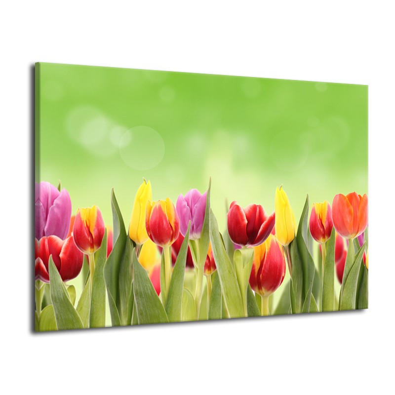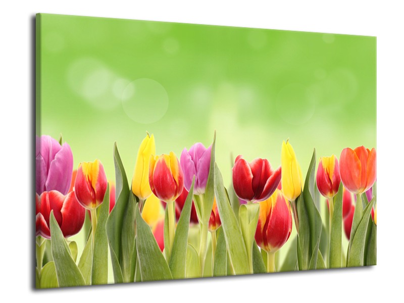 Glasschilderij Tulpen, Bloemen | Groen, Rood, Geel | 70x50cm 1Luik