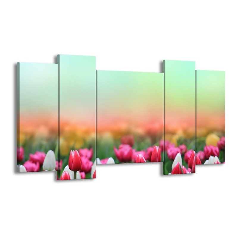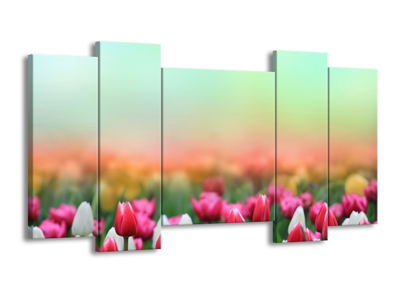 Glasschilderij Tulpen, Bloemen | Groen, Roze, Wit | 120x65cm 5Luik