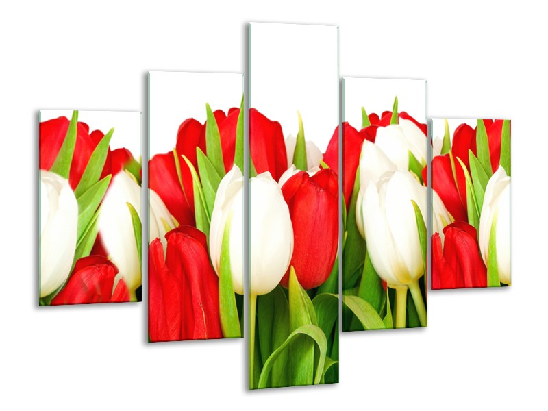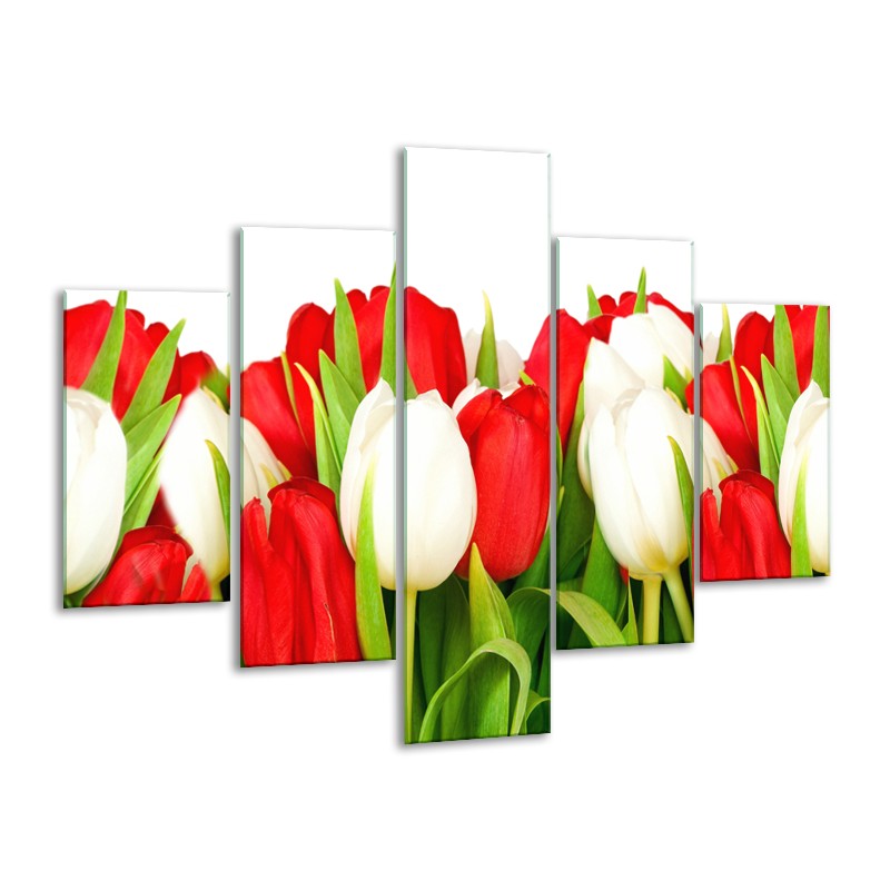 Glasschilderij Tulpen, Bloemen | Rood, Wit, Groen | 100x70cm 5Luik