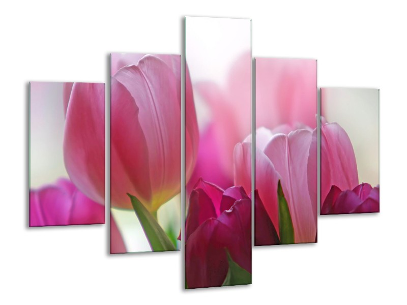 Glasschilderij Tulpen, Bloemen | Roze, Paars | 100x70cm 5Luik