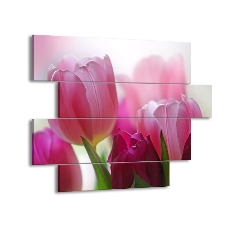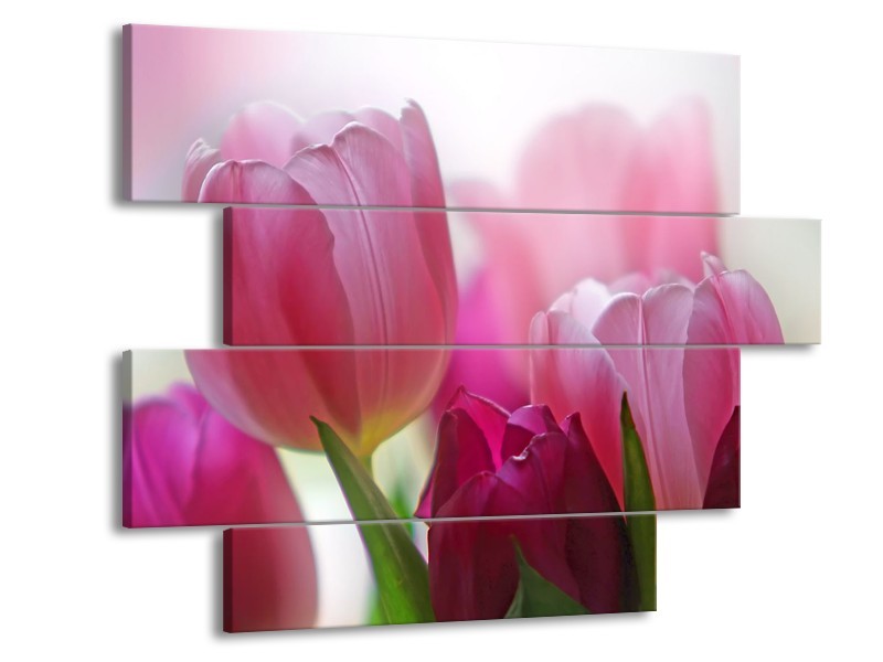 Glasschilderij Tulpen, Bloemen | Roze, Paars | 115x85cm 4Luik