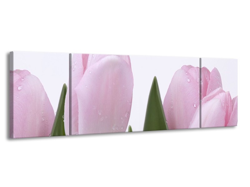 Glasschilderij Tulpen, Bloemen | Roze, Wit | 170x50cm 3Luik