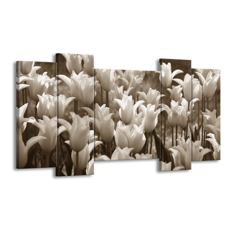 Glasschilderij Tulpen, Bloemen | Sepia | 120x65cm 5Luik