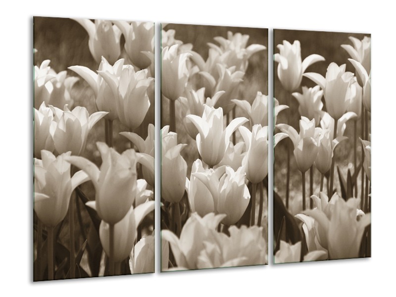 Glasschilderij Tulpen, Bloemen | Sepia | 120x80cm 3Luik