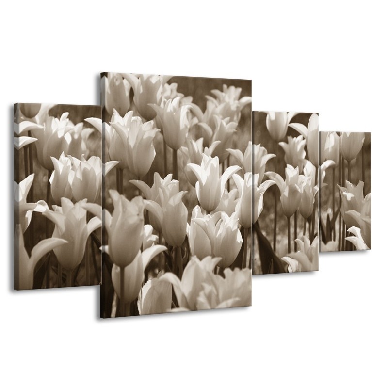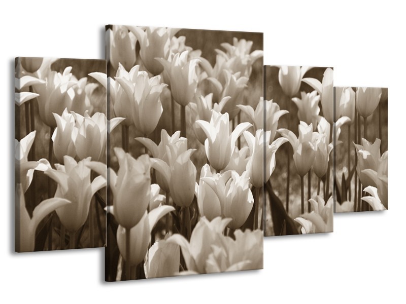 Glasschilderij Tulpen, Bloemen | Sepia | 160x90cm 4Luik