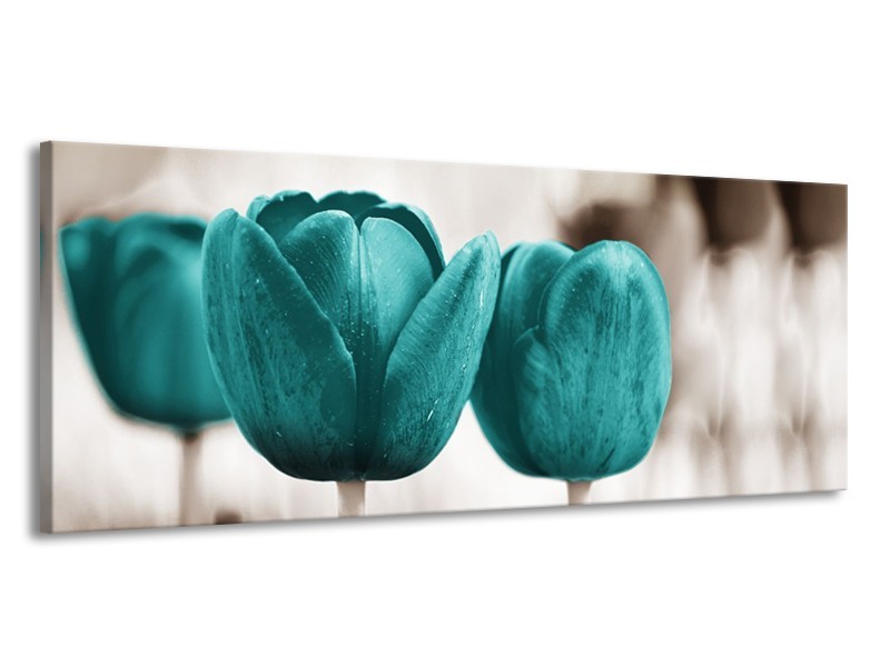 Glasschilderij Tulpen, Bloemen | Turquoise, Sepia | 145x58cm 1Luik