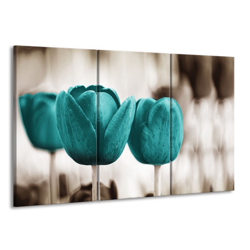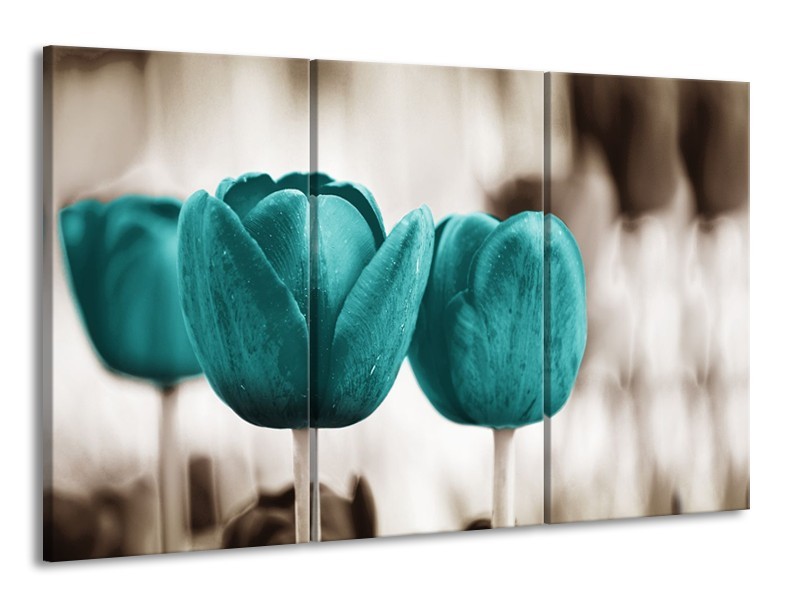 Glasschilderij Tulpen, Bloemen | Turquoise, Sepia | 165x100cm 3Luik