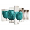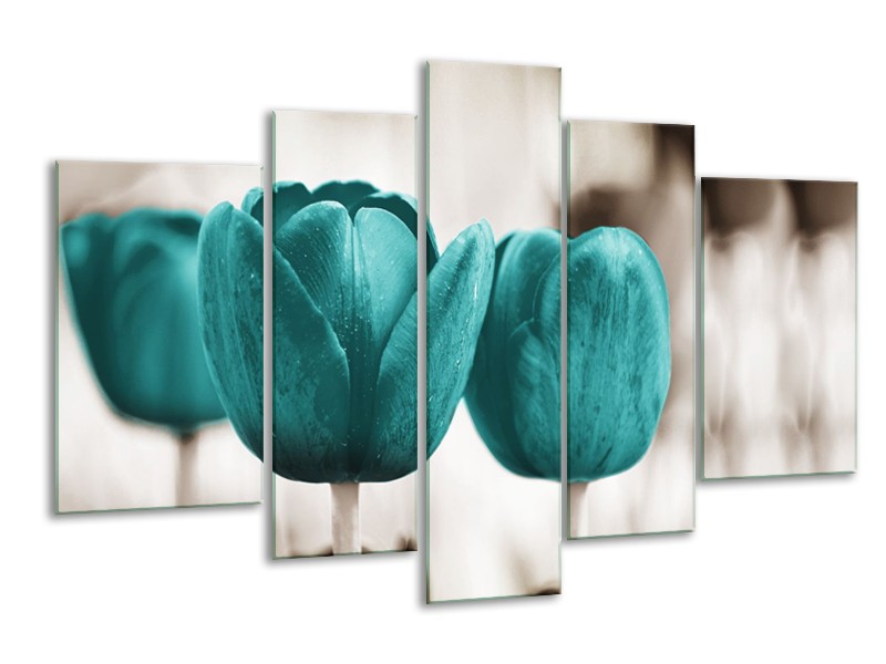 Glasschilderij Tulpen, Bloemen | Turquoise, Sepia | 170x100cm 5Luik