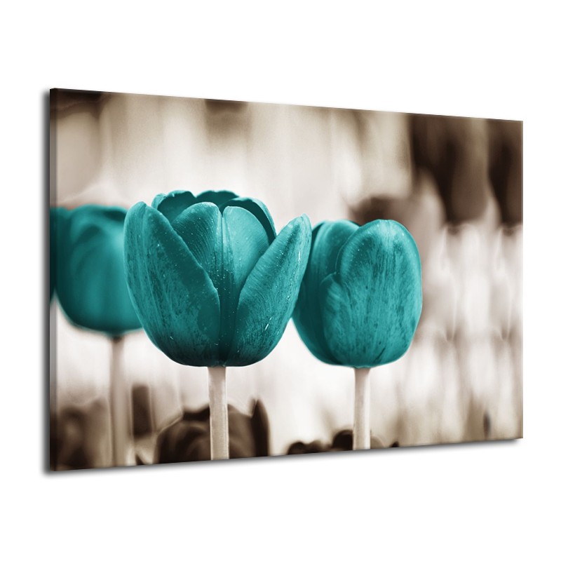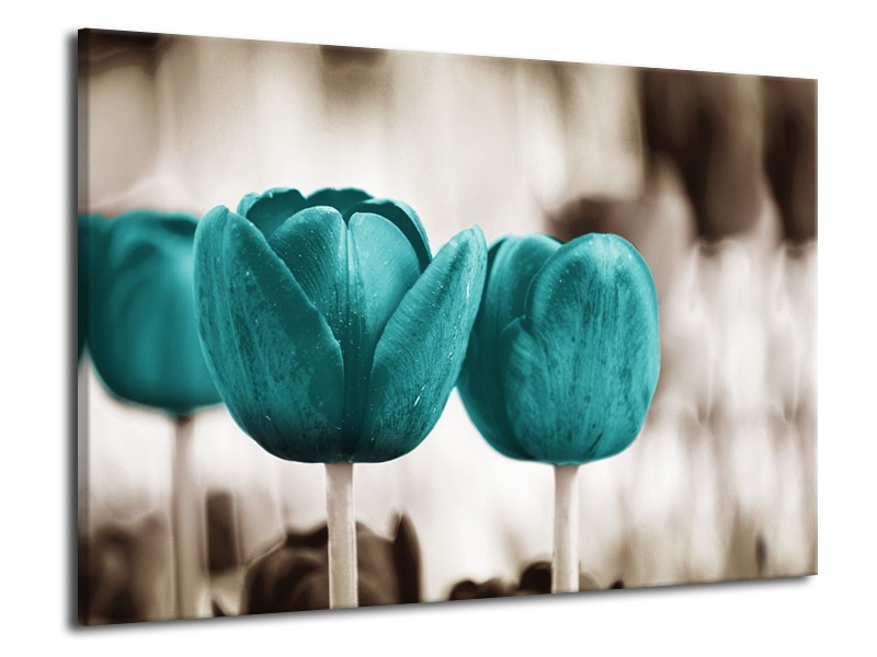 Glasschilderij Tulpen, Bloemen | Turquoise, Sepia | 70x50cm 1Luik
