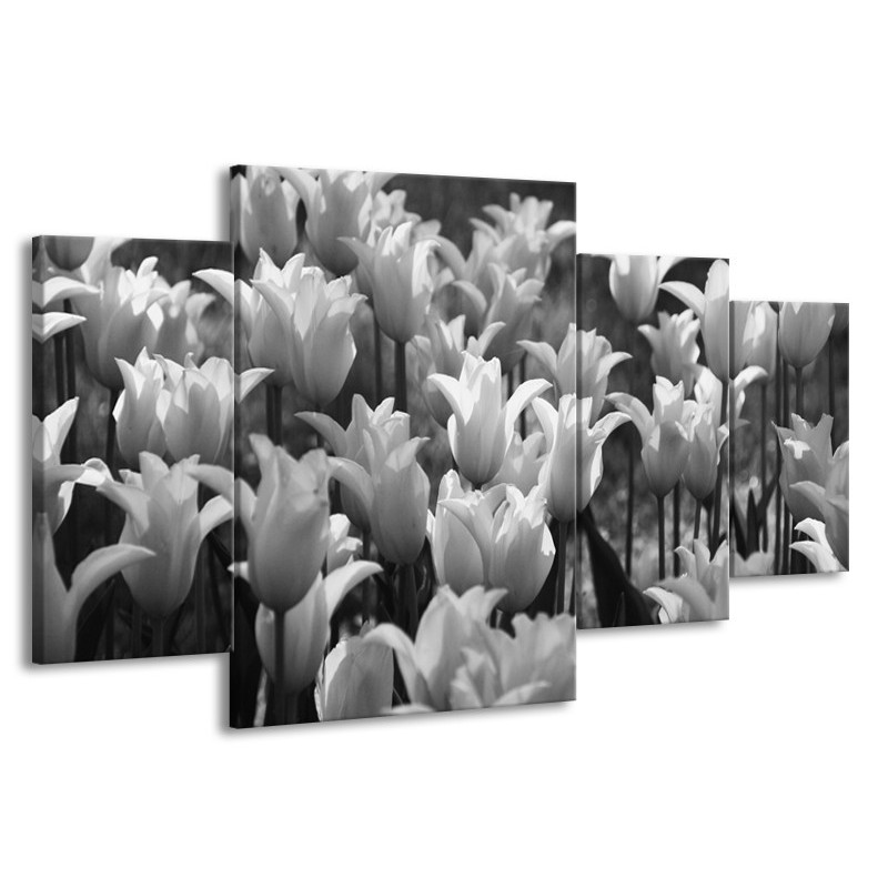 Glasschilderij Tulpen, Bloemen | Zwart, Grijs | 160x90cm 4Luik