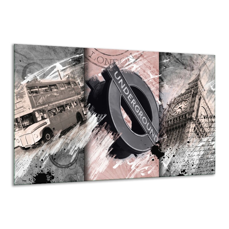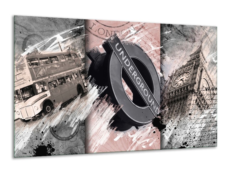 Glasschilderij Underground, Engeland | Grijs, Bruin, Rood | 120x70cm 1Luik