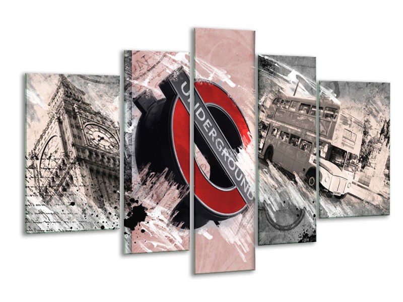 Glasschilderij Underground, Engeland | Grijs, Rood | 170x100cm 5Luik