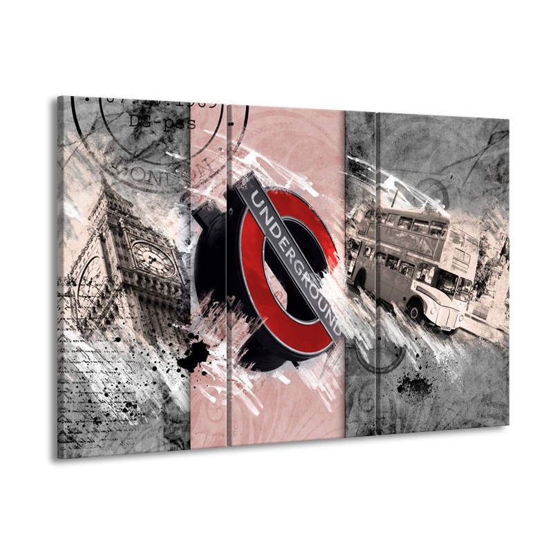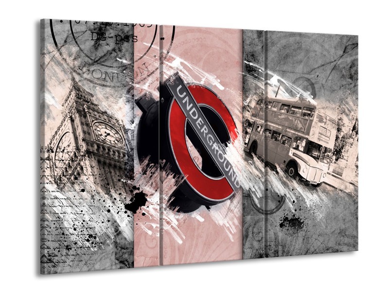 Glasschilderij Underground, Engeland | Grijs, Rood | 60x90cm 3Luik