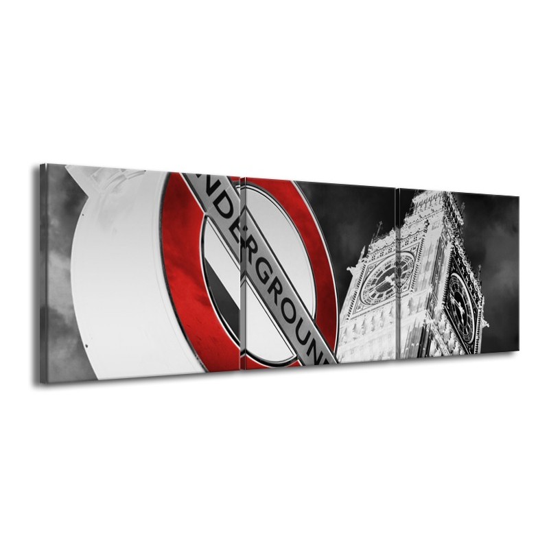 Glasschilderij Underground, Engeland | Grijs, Rood, Zwart | 150x50cm 3Luik
