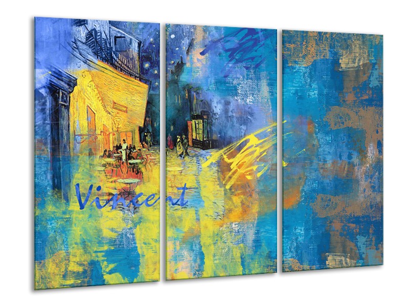 Glasschilderij Van Gogh, Modern | Blauw, Geel | 120x80cm 3Luik