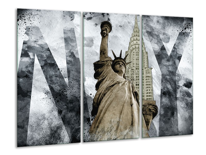 Glasschilderij Vrijheidsbeeld, New York | Grijs, Crème | 120x80cm 3Luik