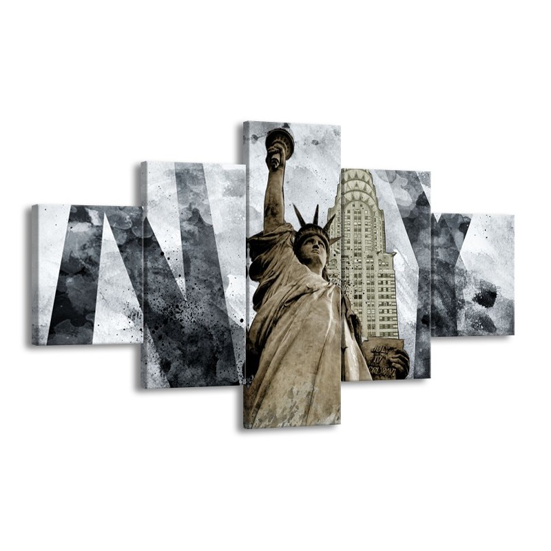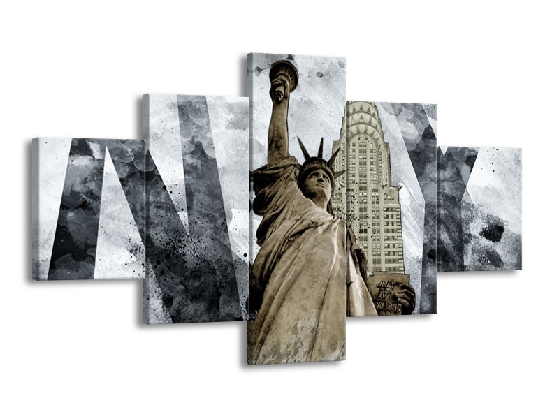 Glasschilderij Vrijheidsbeeld, New York | Grijs, Crème | 125x70cm 5Luik
