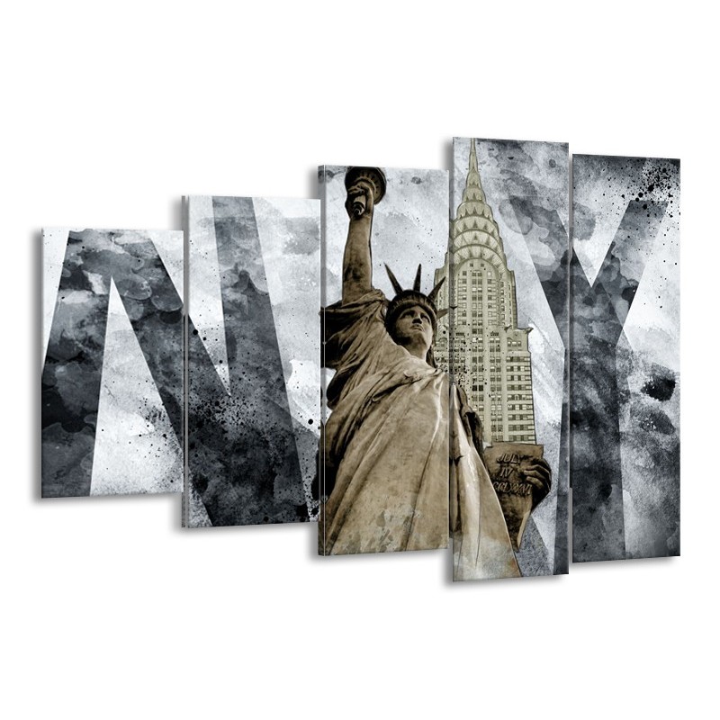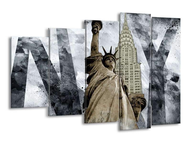 Glasschilderij Vrijheidsbeeld, New York | Grijs, Crème | 150x100cm 5Luik
